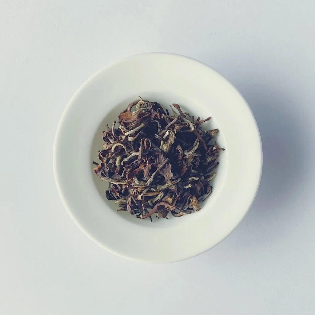 五色茶菁,白毫明显,蜜甜香突出,口感温润甘醇,余韵绵长。